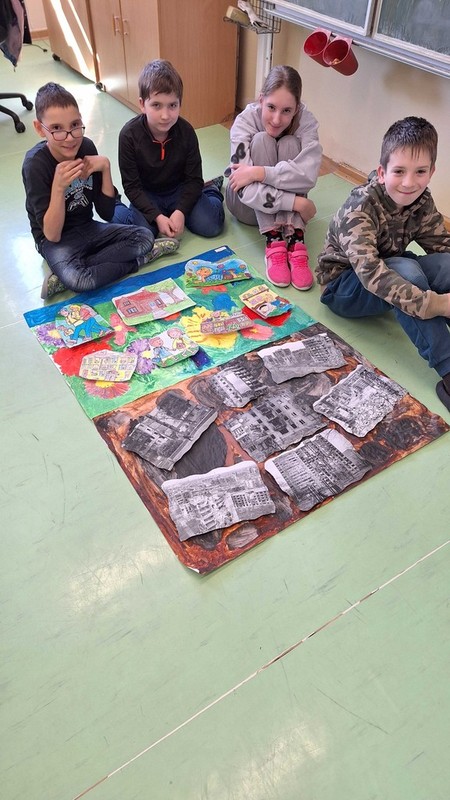 Celý měsíc jsme zpracovávali téma: 80 let života v míru. Naše koláž – společné dílo celé třídy, byla oceněna cenou starosty města Adamova, z čehož jsme měli obrovskou radost.