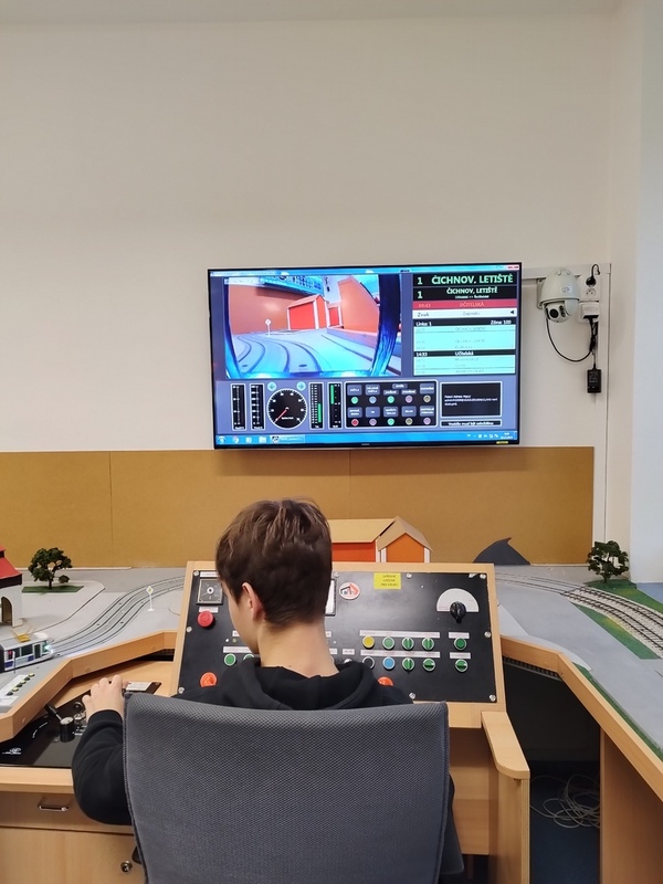 Co si naši žáci vyzkoušeli? Třeba jízdu na simulátoru tramvaje. Pult byl přesně takový, jaký potkáte v tramvaji. Jen ta tramvaj byla maličká a jezdila po trati po obvodu učebny. Tato aktivita vzbudila největší zájem.