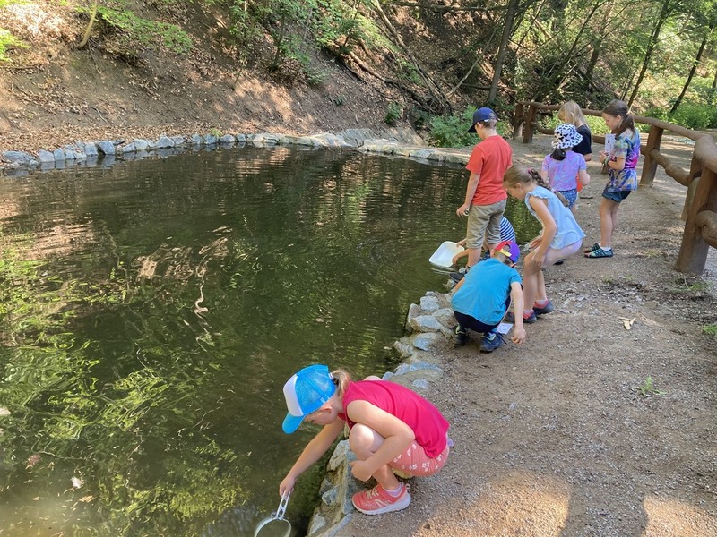 Paní učitelka Dohová si připravila pro děti zajímavý program. Přes Psí studánku jsme dorazili k vodní ploše v lesoparku a přesně tak, jak je tam doporučeno, jsme lovili sítky a poznávali dle klíče vodní živočichy.