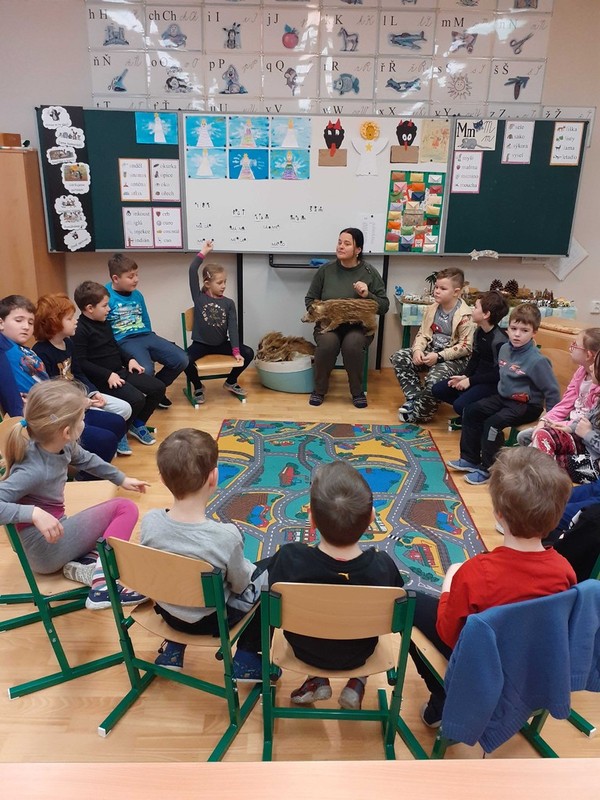 První část jsme strávili ve třídě a v komunitním kruhu jsme se dozvěděli, co jsou pobytové znaky, jaké vjemy jsou u zvířat nejvíce vyvinuté a zahráli si několik zábavných didaktických her. Po svačině jsme se vydali na procházku do lesa za školou, kde jsme hledali a pozorovali pobytové znaky zvířat a zopakovali jsme si spoustu vědomostí, které již známe z prvouky.