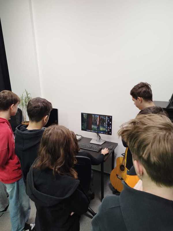 Natáčecí studio bylo dalším z míst, kde se žáci seznámili s profesionálním zpracováním videí a jejich postprodukcí. Na dotaz „Kdo tu chce být youtuber?“ překvapivě nikdo neodpověděl ano. Tamní zaměstnanci žákům vysvětlovali, že být youtuber není nic jednoduchého, stojí za tím mnoho práce a zpětné vazby sledujících (připravte se na „hejtování“ a negativní komentáře, každý na to nemá žaludek). Žáci si zkusili natočit jedno video a následně je upravovali. Nikdo se k hlavní roli řečníka neměl, takže role padla na doprovázející paní učitelku. Ta vytvořila pozvánku na plánovanou akci Mergado Fest 2025).