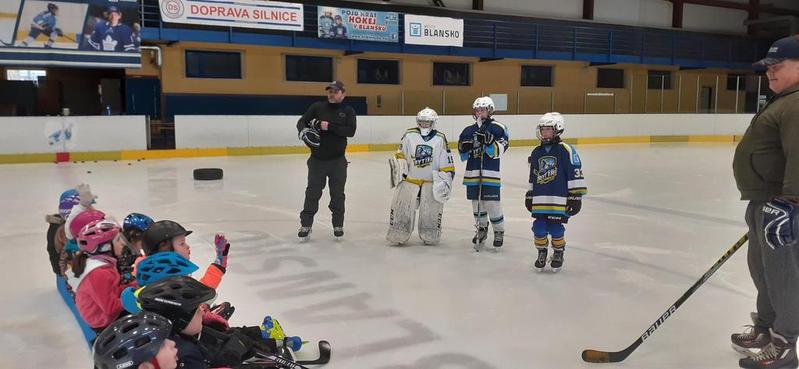 Na děti čekali na blanenském zimním stadionu trenéři i nadějní hokejisté, kteří nebyli o moc starší než děti z družiny. Na místě bylo nachystáno i malé občerstvení v podobně výborného čaje, kterým nikdo nepohrdl.