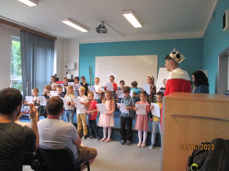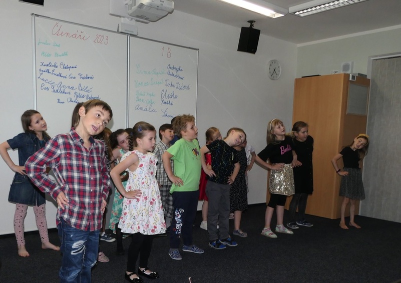 V 1. B dne 13. 6. 2023 měly děti připravené společné pásmo z písniček a básniček o písmenkách. Samozřejmě se děti velice těšily na samotné čtení, i když u některých žáků byla patrná i lehká tréma. Jejich výkony pečlivě sledoval král Ota Stanislav I. a rozhodl, že všichni mohou být slavnostně pasováni na čtenáře a čtenářky. Všechny děti dostaly památeční diplom a velký odznak ČTENÁŘ 2023. Na závěr připravila paní vychovatelka Soňa Stoger s dětmi divadelní představení O červené Karkulce, které se mimořádně vyvedlo.