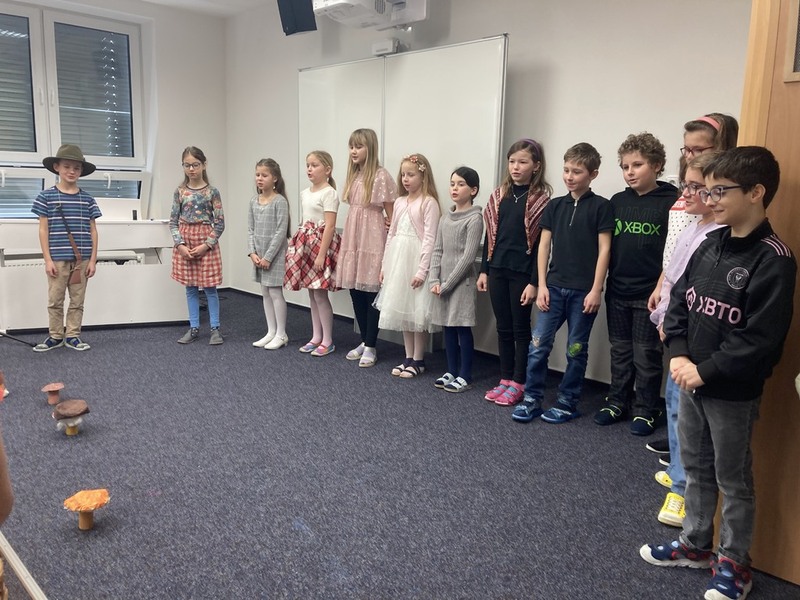 Se zájmem jsme poslouchali i kategorii skupin, ve které se každá třída prezentovala jednou společnou písní. Prvňáčci z 1. C krásně zpívali Abecedu a prvňáčci z 1. B zazívali a zatančili Kytku masožravou, z druháčků se na chvíli stali báječní Hlídači krav, třeťáci skvěle zazpívali i zahráli Klouzky a čtvťáci zvítězili s Pokáčovou Antarktidou.