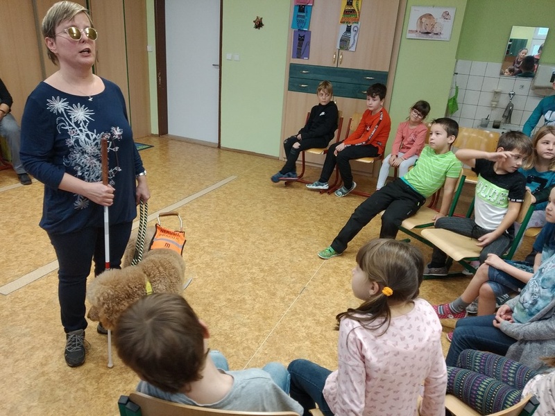 Povídaly si dětmi o tom, jak se zachovat a nejlépe pomoci, když na ulici potkají nevidomého člověka a k čemu se používá bílá hůl. Ukázaly spoustu pomůcek, jenž mohou slabozrakým a nevidomým trochu ulehčit život.