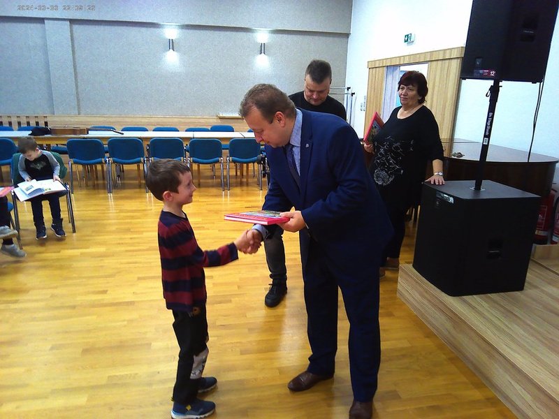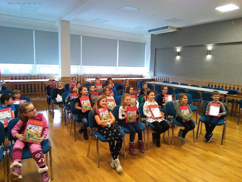 V úterý 18.11. 2025 se žáci 1.A a 1.B sešli v MKS Adamov, aby z rukou pana starosty převzali Slabikáře. Akce byla naplánována přesně, protože obě třídy „končí“ s učebnicí „Živá abeceda“ a pokračovat ve čtení budou už ze Slabikáře.