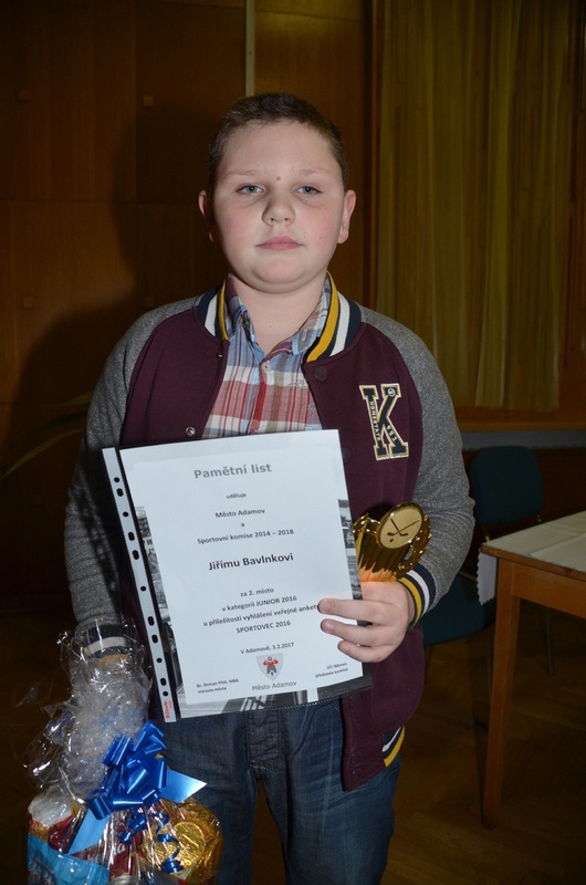 Dne 3. února se v době pololetních prázdnin uskutečnilo slavnostní předávání ocenění Sportovní komise a města Adamova s názvem Sportovec 2016. Naše škola zde získala dvě velmi krásná ocenění.