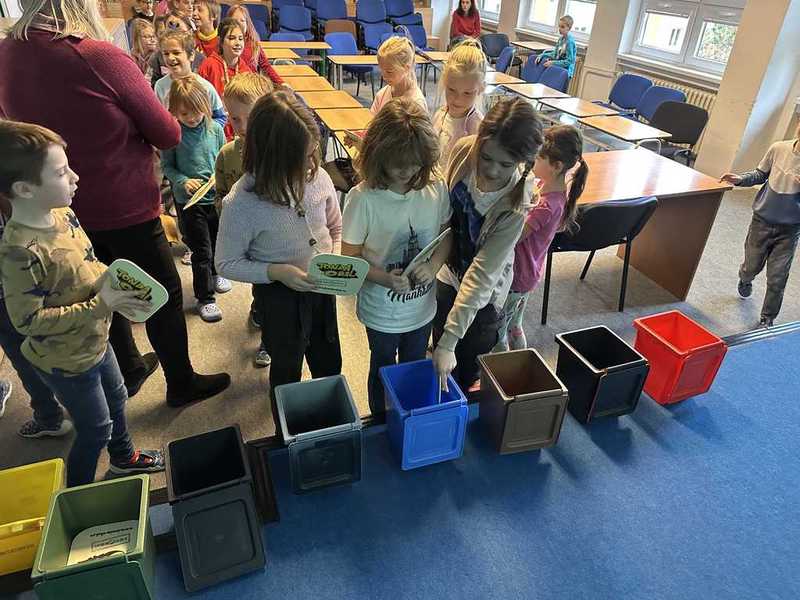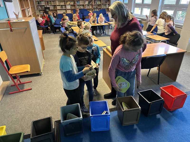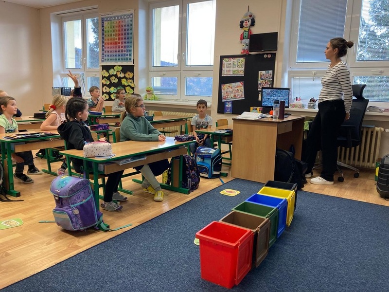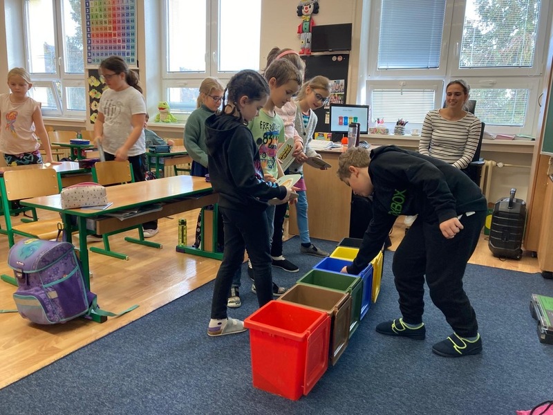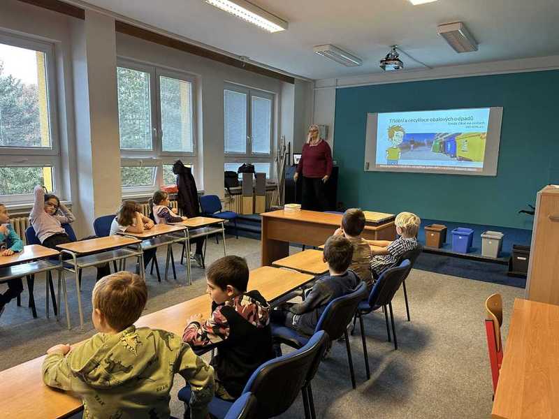 Tento program naši žáci prvního stupně zdarma absolvovali v pondělí 18. listopadu. Každá třída se zúčastnila besedy s praktickou aktivitou k třídění různých materiálů a obalů z výrobků. Lektorka dětem nejdříve prezentovala jednotlivé druhy nádob na odpad. U každé varianty řekla, co do nádoby patří a co tam nemáme vhazovat. Potom si žáci třídění vyzkoušeli a společně jsme opravili chyby. Díky využití interaktivní tabule, jsme se podívali i na krátká videa o nakládání s plasty nebo papírem. Ta můžete najít na uvedeném webu. Spousta dětí základní třídění odpadů velmi dobře ovládá a dokonce se účastní sběrových akcí na podporu čisté krajiny.