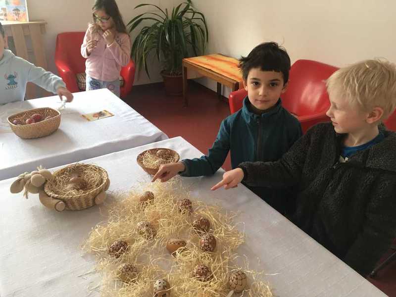 Velikonoce jsme v družině na Ronovské oslavili s předstihem. Čekal nás pestrý týden ve znamení tohoto významného svátku. V pondělí byla na programu hra Najdi velikonoční vajíčko. Kvůli nepřízni počasí se nakonec místo v přírodě odehrála v tělocvičně, kde na děti čekala řada stanovišť s dovednostními úkoly. Malovaly velikonoční vajíčka, běžely slalom nebo skákaly panáka. Pak následoval barevný den. Do školy se vyrazilo ve žlutém oblečení. Ve středu jsme pak společně navštívili Městské kulturní středisko Adamov, kam nás opět pozvala na zajímavou akci paní vedoucí Jitka Králíčková. Tentokrát byla otevřená výstava kraslic vyzdobených voskovým reliéfem z dílny Lenky Provazníkové. V prostorách kulturního domu jsme si prohlédli výstavu fotografií Barvy z nebe II Petra Buchty a Pavla Lazárky. Ti z ptačí perspektivy vyfotografovali zajímavá místa na jižní Moravě, z motorového paraglidingového křídla a rogala. Na místě jsme si také prolistovali adamovské kroniky.
