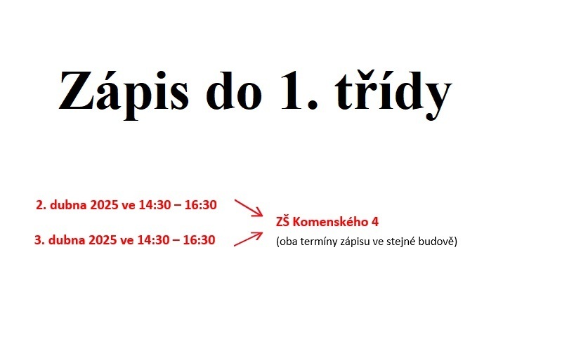 na ZŠ Komenského 4 - (oba termíny zápisu ve stejné budově)